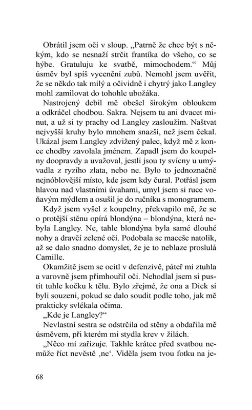 Hledá chlapa, který by s ní šel na pekelnou svatbu. Nestává se každý den, že jste nuceni být v doprovodu nevěsty, zatímco si vaše první láska bere vaši arcinepřítelkyni… jinými slovy nejhorší nevlastní sestru na světě. Celá situace je učiněná noční můra a Langley už je nanic z přijímání rozkazů a z toho, jak se musí nuceně usmívat. Už ji nebaví hrát záporáka, když přitom ona je ta, které se křivdí.