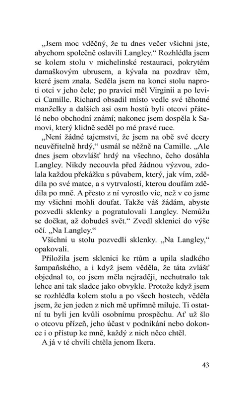 Kdo se během týdne zamiluje až po uši? Langley se to stalo a litovala toho den co den od chvíle, kdy dala své srdce klukovi s příliš mnoha tajemstvími a příliš velkou zátěží. Iker nezapadá do světa Langley a dal jasně najevo, že o to ani nestojí. Odešel ještě dřív, než dostala příležitost pokusit se změnit jeho názor nebo mu dokázat, jak by jim to spolu mohlo klapat. Langley si posledních devět měsíců léčila bolavé srdce a dělala velké plány do budoucna. Plány, ve kterých Iker vůbec nefiguruje… i když se vrátí, hezčí než dřív, a říká samé správné věci.