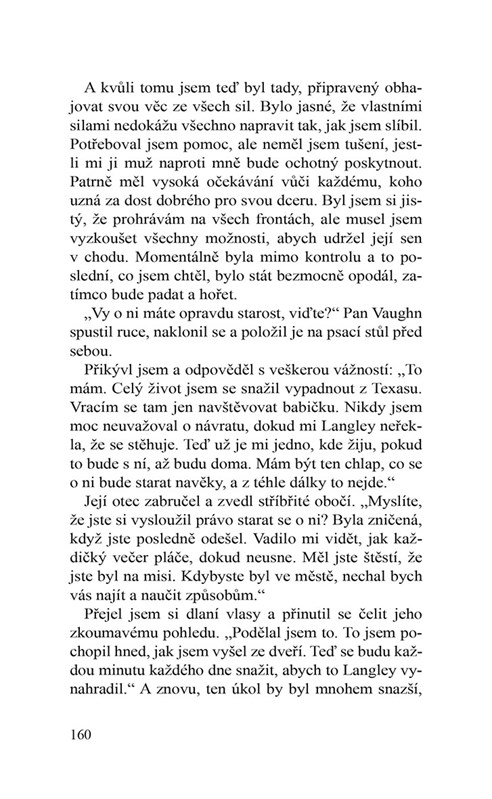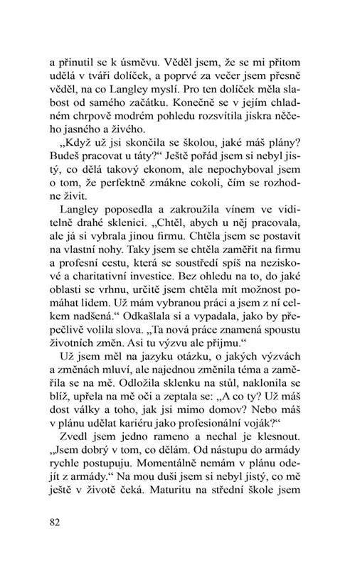 Zpočátku byla ta hezká blondýnka v červených šatech všeho všudy jen prostředek k dosažení cíle. Rychle však začala znamenat mnohem víc. Hned jak Iker od Langley odešel s tvrzením, že to je pro její dobro, pochopil, že to podělal. Opustil ji, aby o něj neměla strach, až bude na misi, aby nemarnila čas čekáním na chlapa, který pro ni nikdy nebude dost dobrý. Jenže o devět měsíců a jednu misi později Iker ještě pořád nedokáže pustit Langley z hlavy… a naprosto podcenil to, jak pevně se drží v jeho zatvrzelém srdci. Je to chlap, který neví, jak by měla láska fungovat, ani jak získat svou dívku nazpátek… a u obojího musí projít bleskovým kurzem.