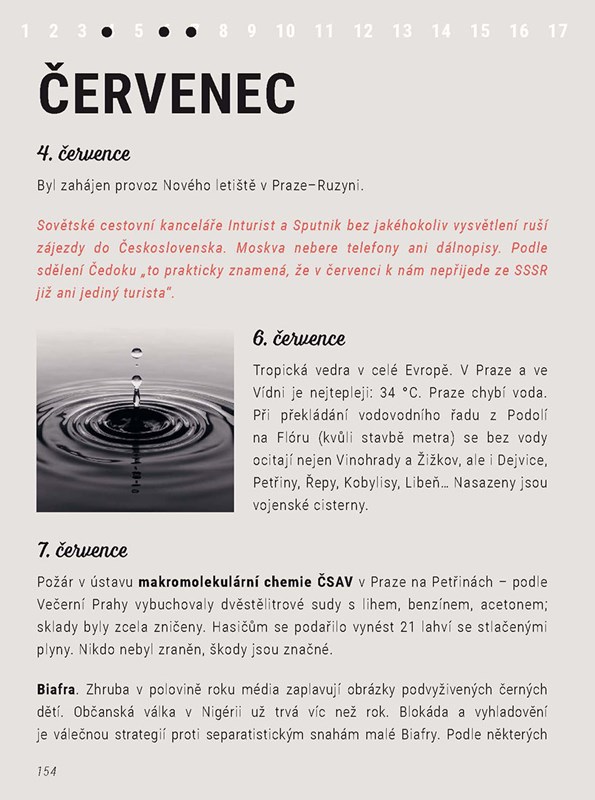 I v těch nejvypjatějších okamžicích dějin žijí lidé své každodenní životy – nakupují, chodí do kina, scházejí se v kavárnách i hospodách, sportují, pracují…Kniha, kterou držíte v ruce, vám ukáže rok 1968 z trochu jiného úhlu. Přečtete si, čím se lidé tehdy bavili, jaká divadelní představení hýbala kulturní veřejností, co se nosilo a proč z oběhu mizely tříkorunové mince.
