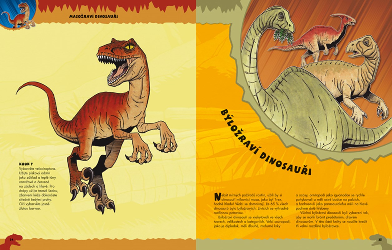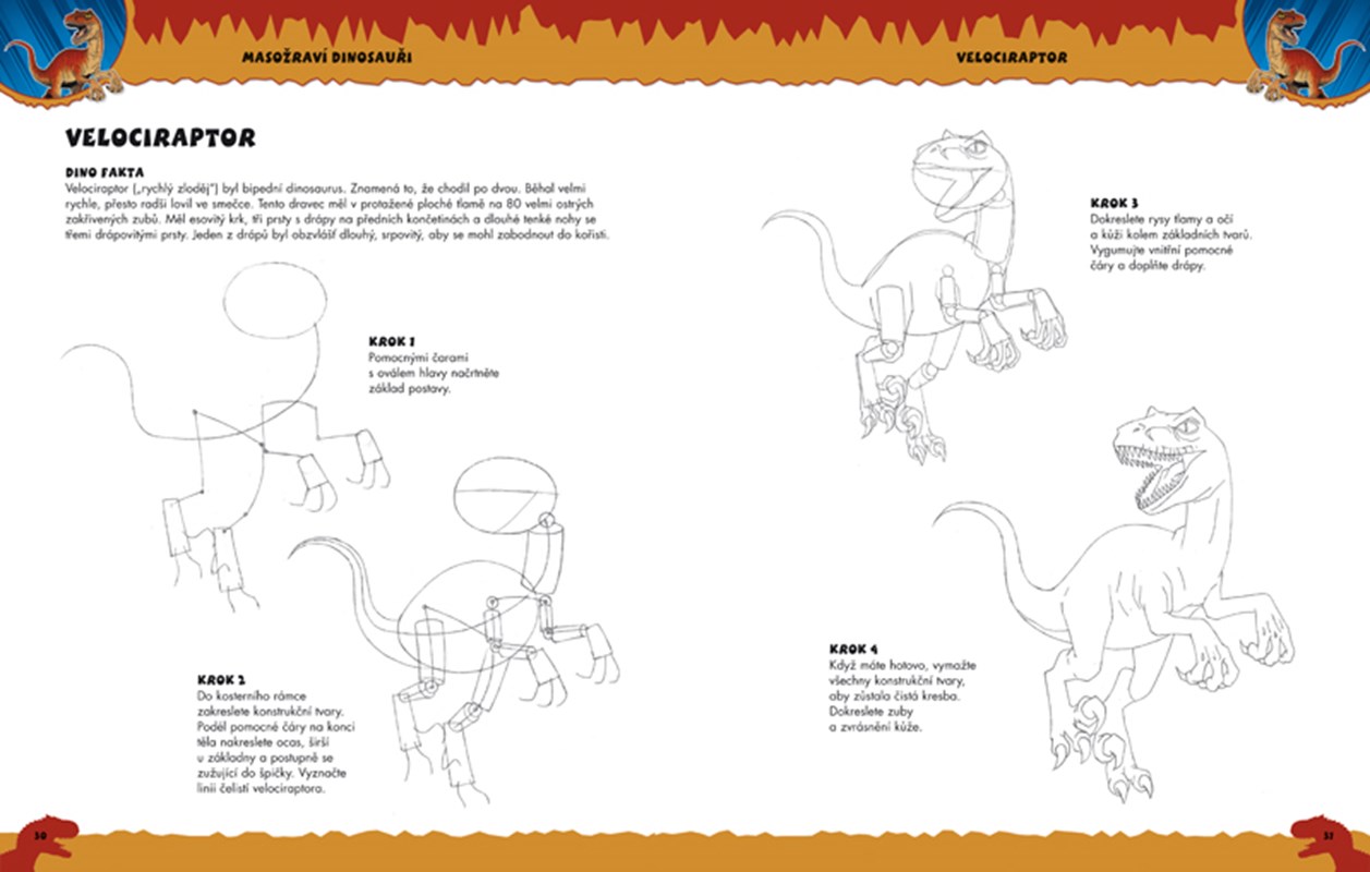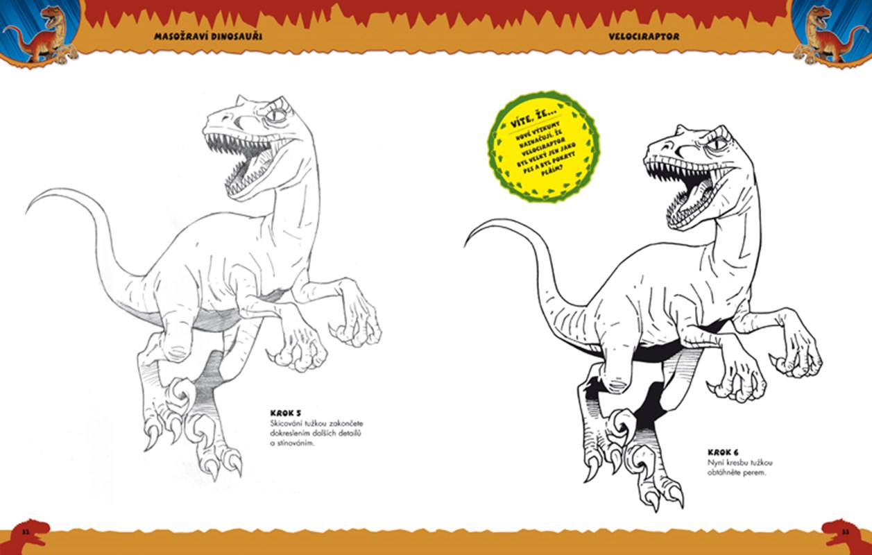 Krok za krokem vám jasně a srozumitelně ukážeme, jak každého z dinosaurů nakreslit - a zatímco budete kreslit, prozradí vám kniha o dinosaurech pár zajímavostí.