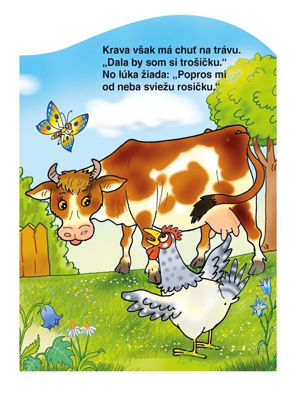 Rozkladacie leporelo s výsekom rozpráva najmenším čitateľom o lakomom kohútikovi a starostlivej sliepočke. Známu ľudovú rozprávku, ktorú si deti ľahko zapamätajú a aj tí najmenší si ju môžu zahrať, dopĺňajú krásne ilustrácie Antonína Šplíchala. Pre deti od troch rokov.