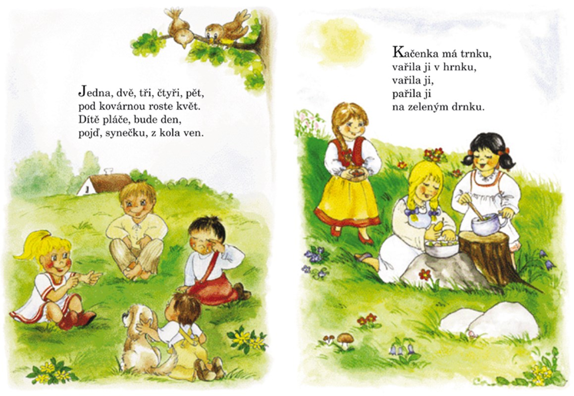 Pec nám spadla, pec nám spadla, ktože nám ju postaví? Starý peciar nie je doma a mladý to nespraví. Zavoláme radšej deda, ten má veľké kladivo. Zahanbiť sa dedko nedá, hneď sa pustí do toho!