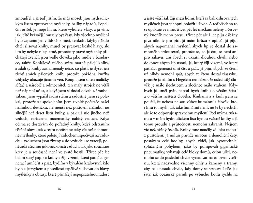 Dělník ve sběrně starého papíru Haňťa pracuje pětatřicet let u stařičkého lisu. Z hromad papíru zachraňuje vzácné knihy a shromažďuje je ve svém pokojíku, čte si v nich a tak je „proti své vůli vzdělán“. Novela Příliš hlučná samota je vlastně vnitřní Haňťův monolog, psaný sonátovou formou se spoustou stále se vracejících motivů. Čtenář se seznámí s Haňťovou první láskou Mančinkou i cikánkou Ilonkou, která zmizela v koncentračním táboře. Je svědkem každodenního zápasu s horami papíru i s nekonečnými džbány piva, vyslyší Haňťovy citace filozofů i jeho sny o důchodu, do kterého si odvede i vysloužilý mechanický lis. Práce je pro Haňťu rituál, balíky slisovaného papíru jsou umělecká díla, v jejichž útrobách se nacházejí poklady ducha. Moderní sběrna, kterou Haňťa navštíví, jej děsí neosobností a sterilitou, nedovede si takovou práci představit. A když je přeřazen do sběrny čistého papíru, kde již nebude moci objevovat krásné knihy, blíží se zoufalé rozhodnutí...