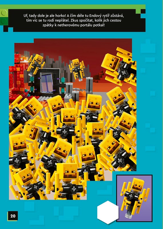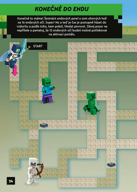 Přidej se k Endovému rytíři na jeho nebezpečné výpravě do tajemné dimenze, kde musí porazit draka z Endu. Tahle výzva není pro žádné strašpytle – pomoz našemu hrdinovi projít Overworld i Nether, posbírat potřebné suroviny a naplnit inventář. Čeká na tebe spousta zábavných úkolů a aktivit. Jen ti nejodvážnější projdou portálem do Endu a postaví se drakovi, který tam čeká!