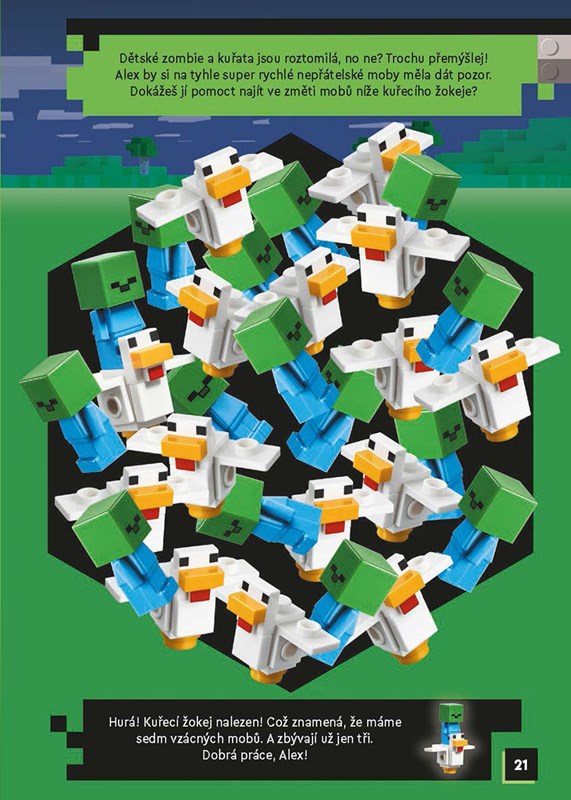 Přidej se k Alex na jejím dobrodružství v nejrůznějších dimenzích a biomech a najdi ty nejvzácnější moby v Minecraftu. Poznej nejhustější místa v LEGO Minecraftu a vydej se na lov těchto těžko polapitelných stvoření. Stav se na návštěvu ke kamarádům jako Steve a Sunny a doplň si inventář. Ale pozor na nepřátelské moby! Užij si spoustu legrace při plnění úkolů, procházení bludišť, samolepkových scénách i mnoha dalších brikulích na výpravě za vzácnými moby!