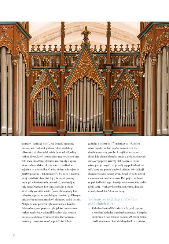V úvodním textu se čtenář seznámí stručně s terminologií a stavbou varhan. Nechybí ani obrys dějin varhanářství a význam varhan v současné době.