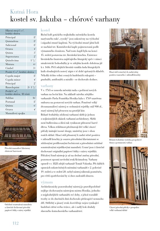Na dalších stranách knihy se potom již nachází přes 110 varhan z celé České republiky, od konce 16. století až po současnost, které jsou představeny nejen textem, ale i bohatým obrazovým doprovodem.