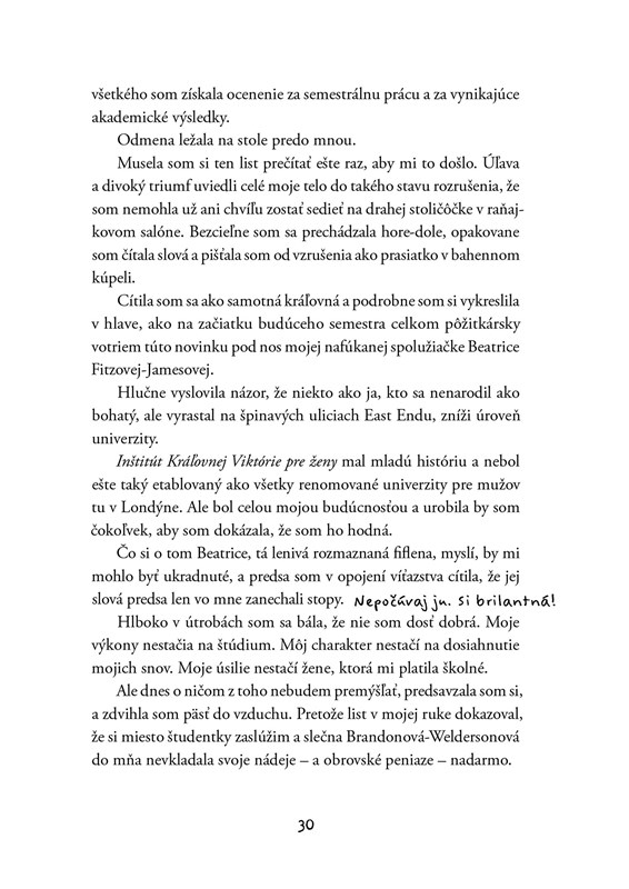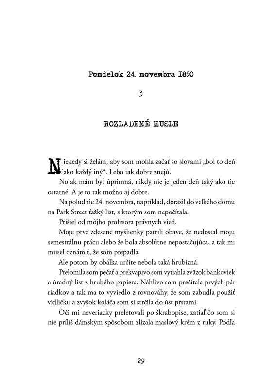 Keď sa však naoko neškodná hádanka zmení na vyšetrovanie vraždy, nebezpečie sa stupňuje. Elisa sa zapletie do úkladov chamtivej londýnskej smotánky. Akoby nestačilo, že medzi bohatými musí neustále dávať pozor na vhodné správanie, niekto z nich teraz môže byť dokonca vrahom! A Elisa sa navyše nevie na nič poriadne sústrediť, pretože jej myšlienky neustále smerujú k nedostupnému pánovi Greenovi, ktorý jej vždy rozbúši srdce.