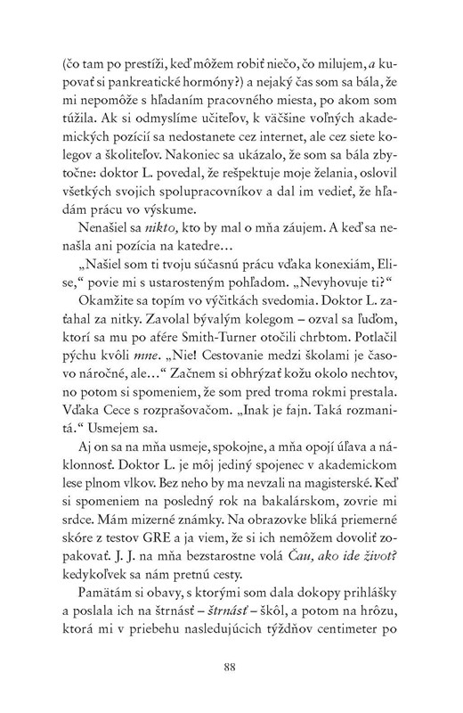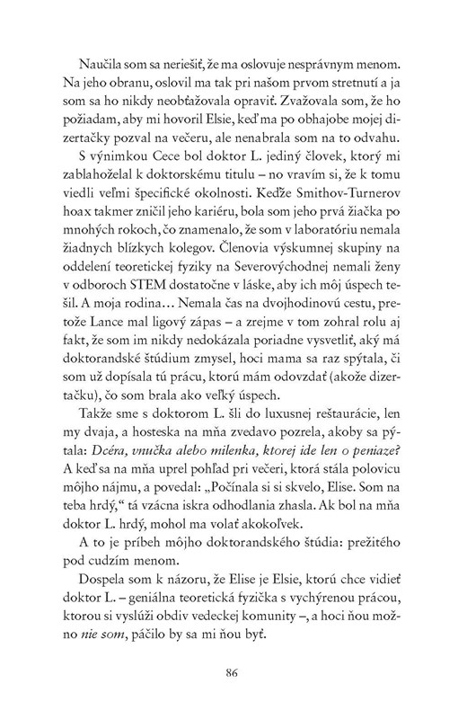 Je to celkom príjemná práca, kým nezistí, že Jack Smith, starší brat jej obľúbeného klienta, je chladnokrvný experimentálny fyzik, ktorý zničil kariéru jej mentora a podkopal povesť teoretikov po celom svete. A tento Jack sedí v prijímacej komisii na MIT, kam sa Elsie túži dostať.