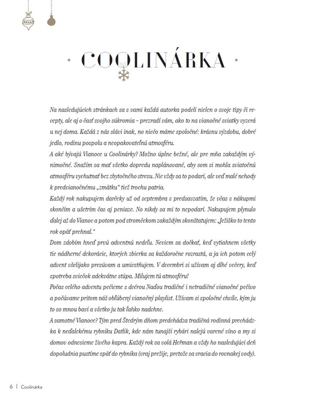 Známa česká foodblogerka Coolinárka spojila svoje recepty a návody na výzdobu interiéru aj exteriéru s ďalšími inšpiráciami od mnohých popredných českých blogeriek a instagramistiek. A tak vznikla táto galéria vianočných nápadov plná krásnych fotografií a návodov na tvorenie.