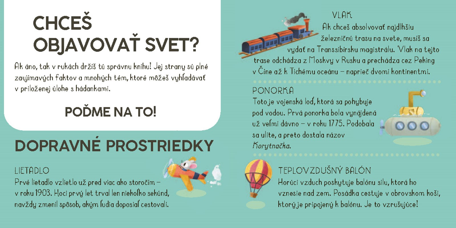 Pútavú KNIŽKU s jednoduchým textom a farebnými ilustráciami, vďaka ktorej si deti zapamätajú neuveriteľné a zábavné fakty o svete, ľuďoch, pamiatkach, zvieratách a veciach.