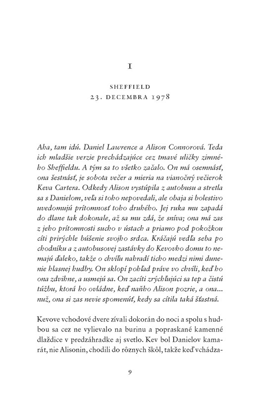 LenĹľe to bolo pred mnohĂ˝mi rokmi, hádam v celkom inom Ĺľivote, z ktorĂ©ho Ali jednĂ©ho dĹa bez rozlúčky ušla. Po rokoch sa však odrazu na displeji jej mobilu objavĂ Danovo meno s odkazom na pieseĹ z ich spoloÄŤnej minulosti. Na dve blaĹľenĂ© minĂşty sa Alison zmenĂ z dospelej, rozumnej Ĺľeny a matky dvoch dcĂ©r ĹľijĂşcej v Adelaide na šestnásĹĄroÄŤnĂ© slobodnĂ© dievÄŤa v anglickom Sheffielde. NemĂ´Ĺľe si pomĂ´cĹĄ a na tĂşto vĂ˝zvu musĂ odpovedaĹĄ.