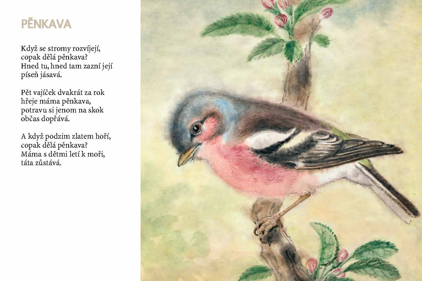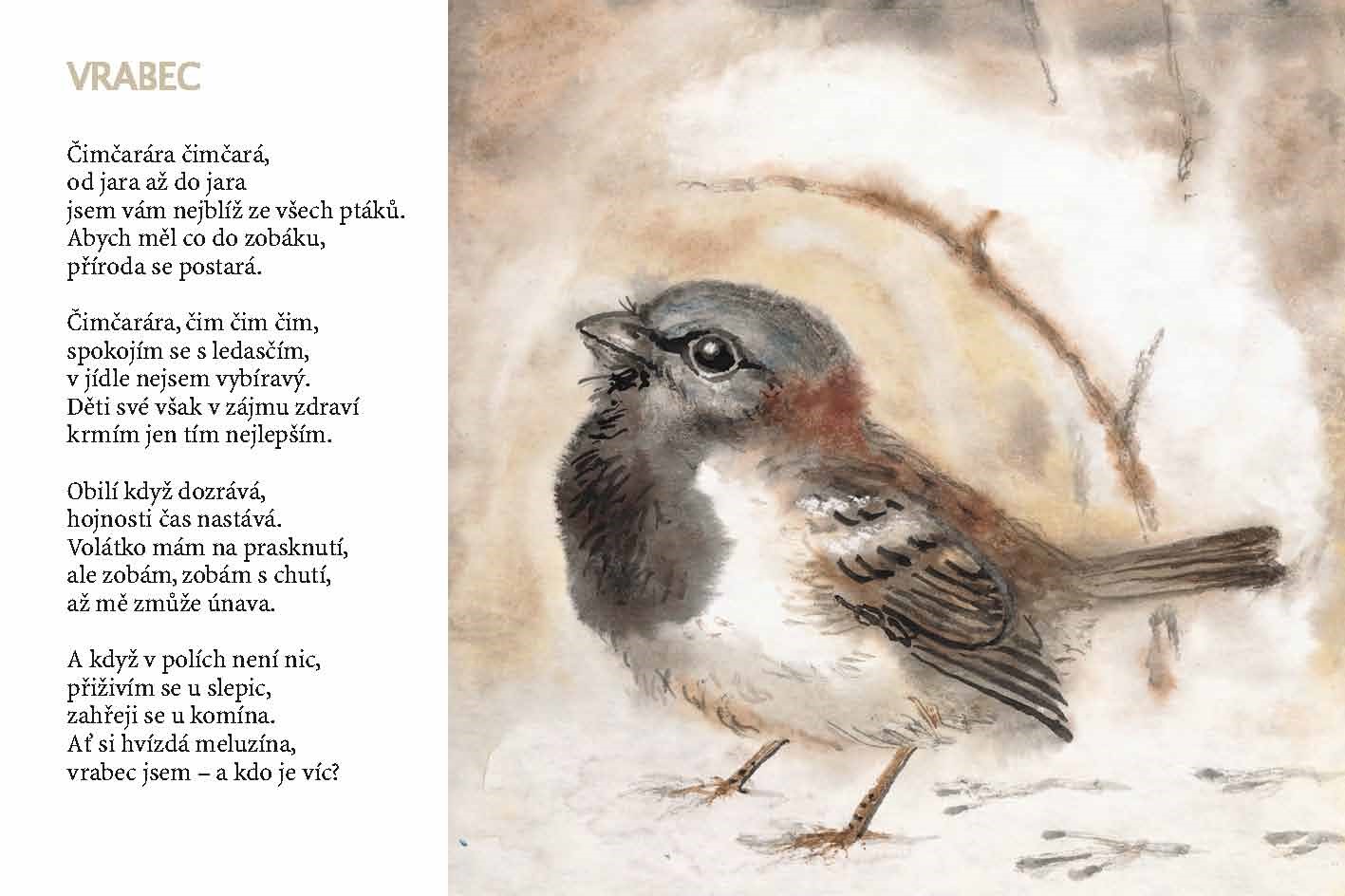 nakreslil dvaatřicet nejznámějších ptáků, s nimiž se můžeme setkat v našem okolí, a doplnil každou ilustraci verši,
