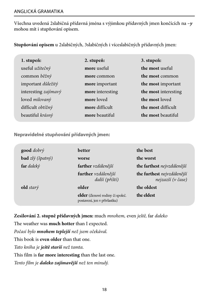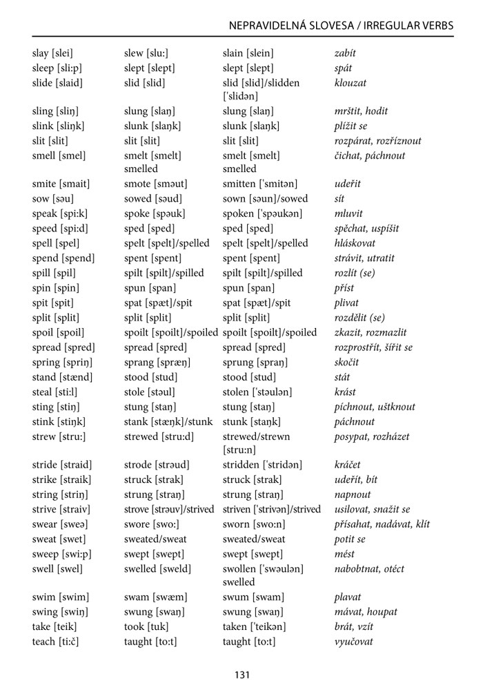 V závěru se nachází přehled anglických nepravidelných sloves, seznam nejpoužívanějších frázových sloves a abecední seznam gramatických jevů pro rychlé vyhledávání potřebných informací.