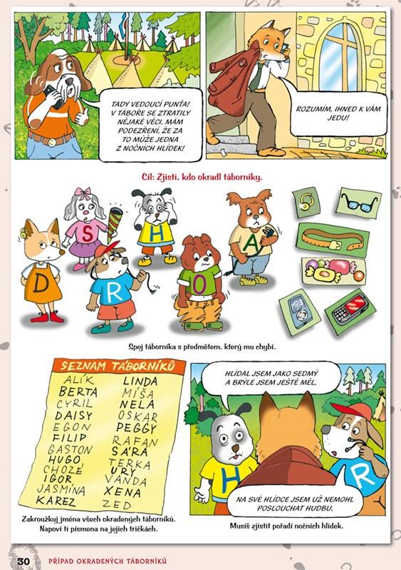 Mazaný detektiv Fox vás požádá o pomoc při řešení celkem 10 zapeklitých kriminálních zločinů, při jejichž vyšetřování budete muset luštit důmyslné rébusy, číst napínavé komiksy, kreslit obrázkové úkoly a na konci práce budete podrobeni rafinovaným testům.