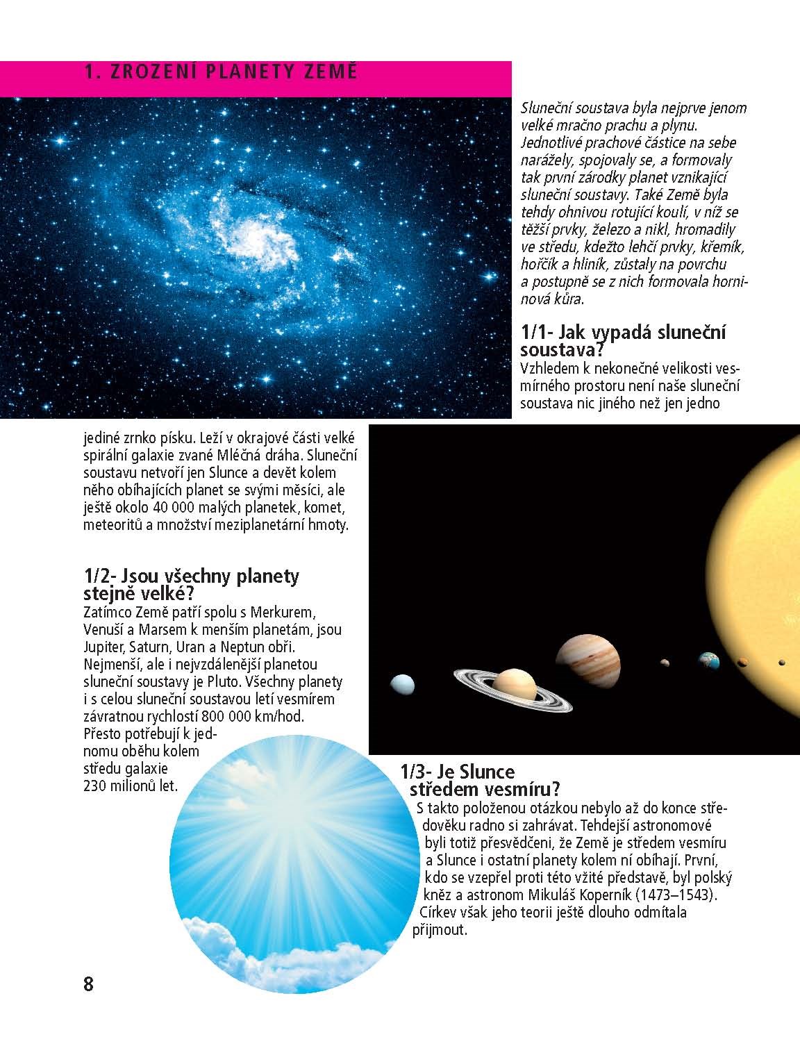 Kniha svou přístupnou formou zaujme i dospělého, který se tak dozví ledacos nového z posledních objevů v heslech Nejpodivnější tvorové dávné minulosti, Zrození a zánik hor, Život a smrt dinosaurů či Minulost koně a Živé fosilie.