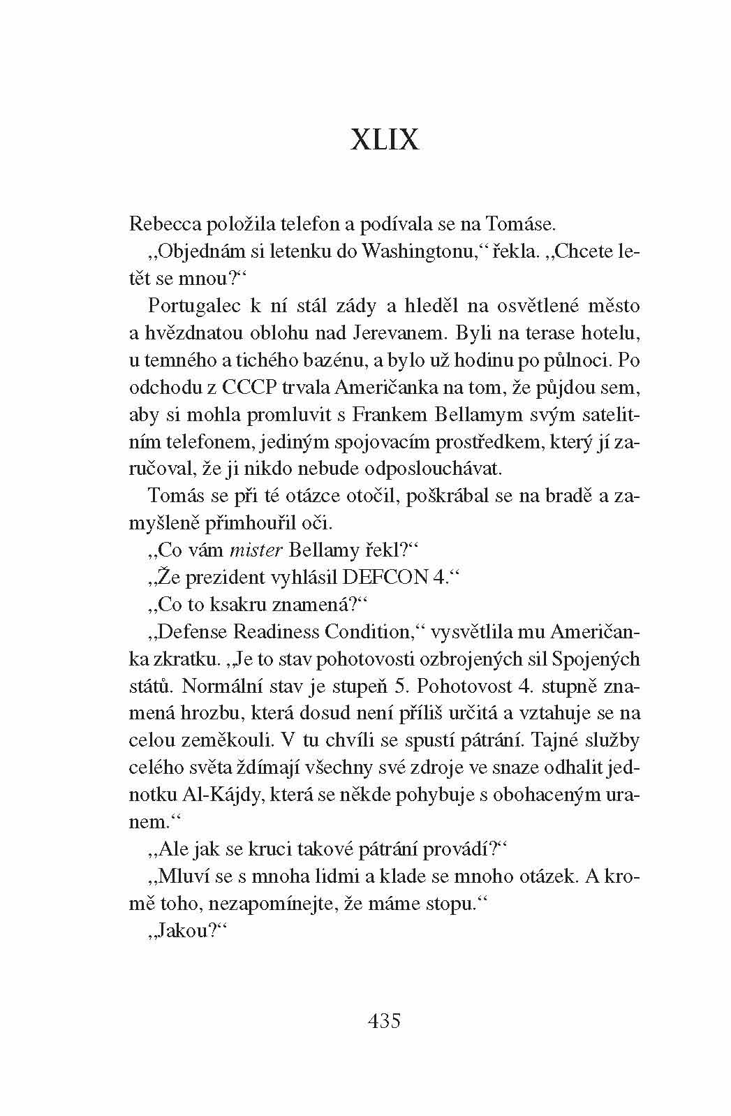 Román líčí nová dobrodružství historika Tomáse Noronhy, který byl hlavním hrdinou veleúspěšné knihy z pera téhož autora, jímž byla Šifra samotného Boha. Tomás, jenž je díky svému povolání historika výtečným znalcem islámského světa, tentokrát bojuje spolu s agenty Spojených států amerických proti hrozbě nukleární katastrofy. Islámští teroristé se podle zpráv výzvědných služeb dostali k jadernému materiálu a chystají se provést zničující atentát. Tomás díky svým zkušenostem a intuici jejich plány překazí doslova v poslední vteřině. Bohatý a napínavý děj zavádí čtenáře na Azorské ostrovy, do Egypta, Pákistánu i Afghánistánu a vedle toho je také na základě množství prostudované literatury seznamuje s ideovým podhoubím islámských fundamentalistů a se způsobem jejich myšlení.