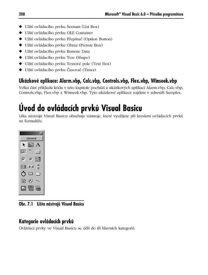 Kniha nejprve probírá základy Visual Basicu - správu projektů, formuláře, ovládací prvky a nabídky, vlastnosti, metody a události, projekty, průvodce, dokumenty ActiveX, komponenty a doplňky (Add-ins). Vysvětluje strukturu a chování událostmi řízené aplikace, proměnné, konstanty a datové typy, procedury a funkce, rozhodovací a řídicí struktury, použití objektů. Další kapitoly jsou věnovány tvorbě uživatelského rozhraní, standardním ovládacím prvkům a prvkům ADO, zobrazování standardních dialogových oken, datovým prvkům, vypočítaným polím. V další části se již dostáváte do programování hlouběji, naučíte se důkladně práci s objekty, kolekcemi, třídami, událostmi, poznáte polymorfismus. Zvláštní kapitoly jsou věnovány programování s využitím komponent, reakcím na události myši a klávesnice, práci se soubory a grafikou, ladění programů, ošetřování chyb, vývoji mezinárodně použitelných aplikací a distribuci vytvořených aplikací. Čtyři dodatky pak vyjmenovávají omezení Visual Basicu, jeho konvence, volby kompilátoru a popisují doplnění nápovědy do aplikací. Okamžité osvojení vysvětlované problematiky je podepřeno ilustrativními příklady. Kniha také odpovídá na očekávané otázky a dává upozornění, rady a tipy k efektivnímu programování.