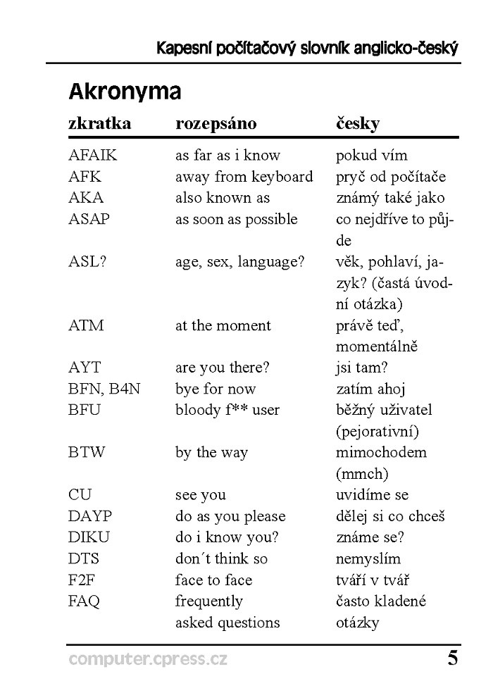 Nabízíme vám proto kapesní pohotovostní příručku s tisícovkou často používaných počítačových slov a slovních spojení.