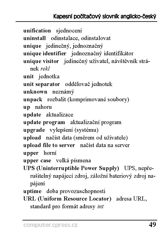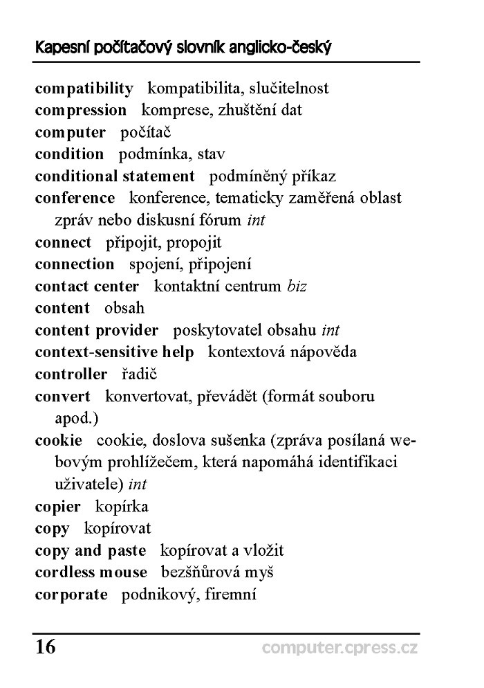 Jazykem počítačů je bezpochyby angličtina. Řada anglických počítačových termínů postupně proniká do češtiny (a dalších jazyků) a bez potíží se tam zabydlují. Přesto dost možná narážíte při práci s počítačem, při surfování na Internetu nebo třeba při ovládání digitálního fotoaparátu na anglické termíny, kterými si nejste zcela jisti.