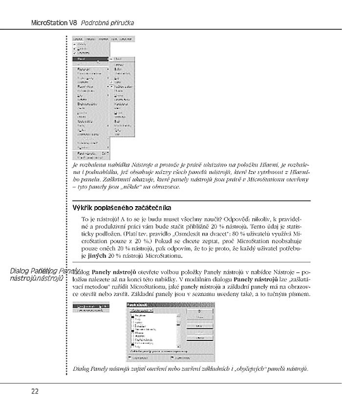 Kniha je určena především pro standardní uživatele MicroStationu V8 (ale i předchozích verzí a MicroStation PowerDraft), pro pracovníky, kteří „potřebují v MicroStationu něco udělat “. Autor se pokusil na 550 stran rozmístit maximum informací, pouček, triků a postupů, které by měly standardnímu uživateli pomoci k tomu, aby MicroStation využíval efektivně. Kniha je členěna do 35 kapitol. Čtenář je může procházet postupně, nebo si pomocí mezititulků na vnějších okrajích stránek vyhledat téma, které ho zajímá. Důležitý je i dodatek informací o problematice nového formátu .dgn