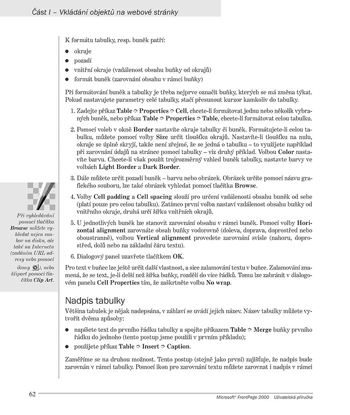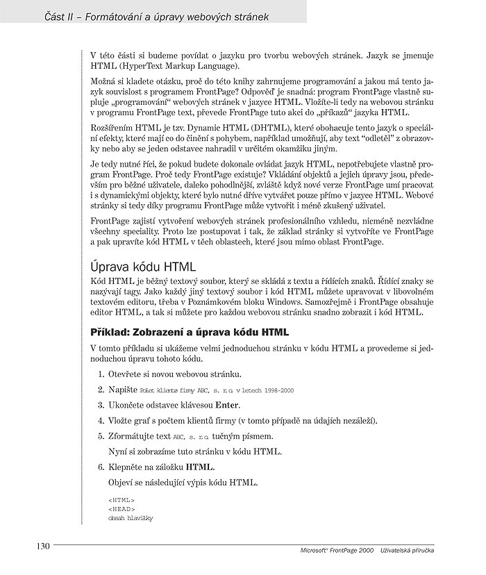 V úvodní kapitole se seznámíte s tím, co celý proces vytváření a správy webu obnáší. V dalších kapitolách se již zcela ponoříte do možností a postupů při tvorbě textových stránek, stránek s tabulkami i grafických stránek, v nichž poznáte i efekty s obrázky či řešení problémů s jejich pomalým načítáním. V dalším porozumíte problematice odkazů a navigace, díky nimž vzniká vhodně provázaný komplex stránek – webové sídlo. Naučíte se, jak obohatit stránky o různé dynamické efekty, jako jsou animace, reklamní proužky (bannery), propadávací tlačítka, počítadla ad. Časté využití webových stránek představují formuláře, kterým je rovněž vyhrazena samostatná kapitola. Následuje důležité téma umísťování objektů na stránkách pomocí rámců. Část věnovaná tvorbě stránek končí stručným seznámením s použitím dalších komponent, kam patří jednoduché skripty, applety Javy a ovládací prvky ActiveX.