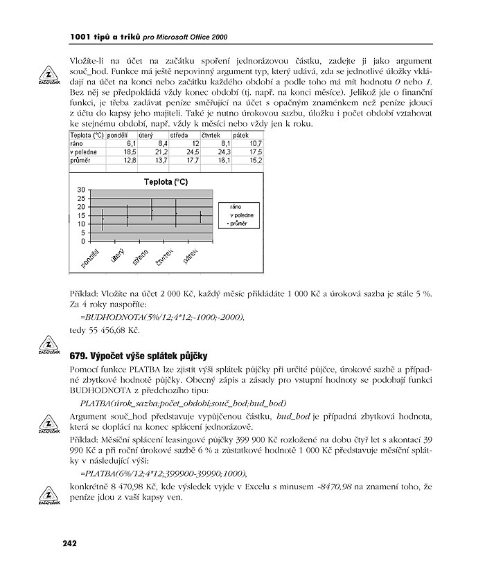 V knize objeví nové možnosti všichni – snad s výjimkou dokonalých znalců Microsoft Office. Většina tipů bude užitečná každému, kdo programy Office používá v každodenní práci a jehož dovednosti nepřevyšují znalosti začátečníka. Na své si však jistě přijdou i zkušenější uživatelé a desítky postřehů a rad jsme připravili i pro odborníky z řad administrátorů a programátorů. Budete sami překvapeni, kolik činností, které i několikrát denně provádíte zdlouhavě, se dá zvládnout stiskem jediné klávesové zkratky, ikony, kterou lze přidat na panel, nebo třeba jiným příkazem. Microsoft Office 2000 je natolik vyspělým, produktem, že – s minimální nadsázkou – lze říci: „kdykoli cítíte, že něco provádíte nepohodlně či složitě, pak ke stejnému výsledku vede mnohem přímočařejší postup – a často ne jediný!“ Víte například: