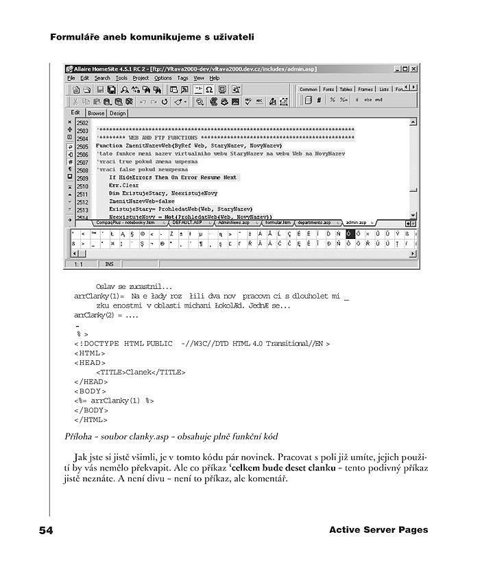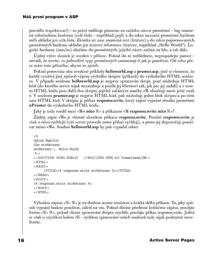 Otevřete-li si dnes jakékoliv noviny s nabídkou práce, mezi prvními na vás „vybafne“ inzerát typu "Hledáme nutně programátora. Zn. ASP." Tam, kde dříve stávalo „podmínkou jazyk Pascal, C++, Assembler“, se objevují zcela jiné pojmy: HTML, ASP atd. Ten, kdo se chce živit programováním, i ten, kdo jen zkouší psát pro svou zábavu, se musí ohlížet po záležitostech spojených s Internetem. Znalost Active Server Pages (ASP) se rozhodně řadí mezi ně.