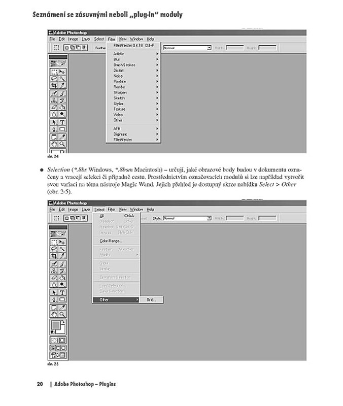 Kromě efektů a filtrů, které patří do základní sestavy Adobe Photoshopu, existuje též množství dalších zásuvných modulů od jiných firem, které umožňují dosáhnout zajímavých výsledků při úpravách grafiky. Publikace představuje několik desítek nejvýznamnějších nebo něčím zajímavých zásuvných modulů, ukazuje, jak je nainstalovat a pracovat s nimi. Na přiloženém CD naleznete popisované programy buď v plné verzi, nebo ve formě většinou plně funkční, jen časově omezené demoverze. Publikace je určena jak uživatelům platformy PC, tak i pro Mac.