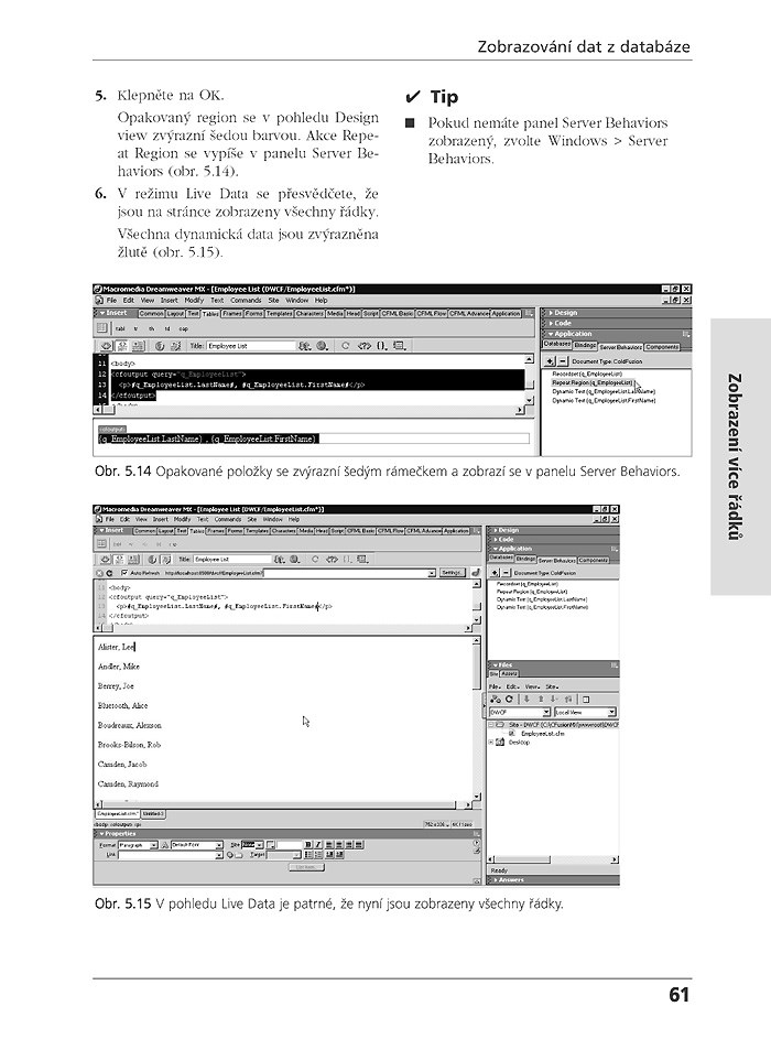- Na www.forta.com/books/0321158024 naleznete vzorové aplikace, databázové soubory, opravy, recenze a odkazy na užitečné zdroje.
