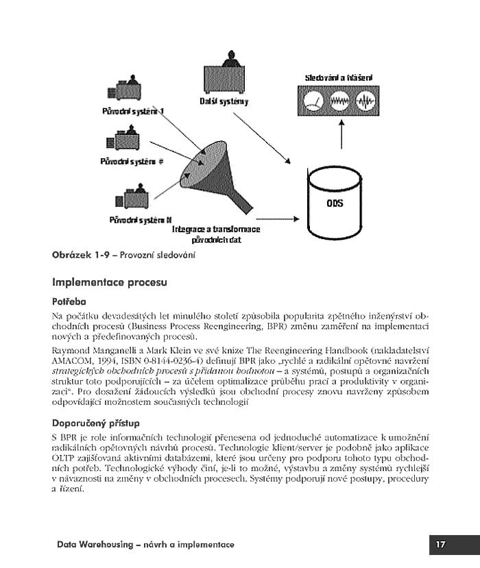 Kniha přináší vše, co potřebuje každý účastník projektu zavádění datového skladu nebo ten, kdo jeho implementaci zvažuje: ukázky možných řešení, popis jejich vytváření, strategie převodu dat, návrh systému a metadat, kritéria pro výběr vhodného hardwaru i softwaru. Doplněno popisem moderních warehousingových systémů Business Objects a SQL Server 2000 (ten je rovněž na CD).