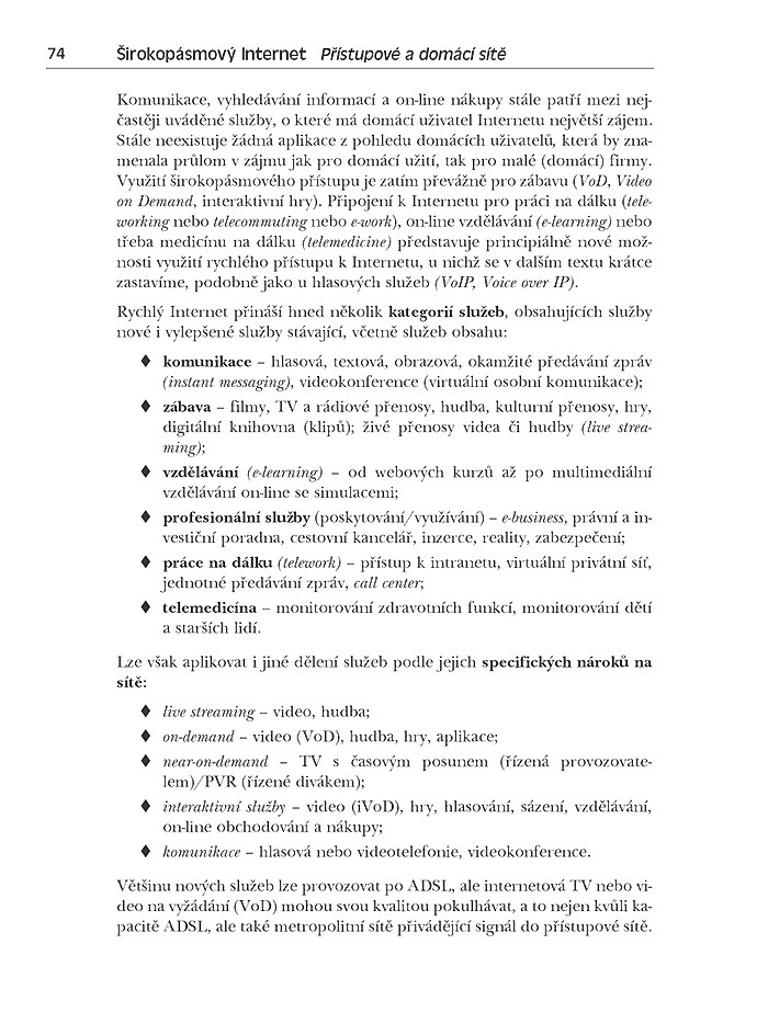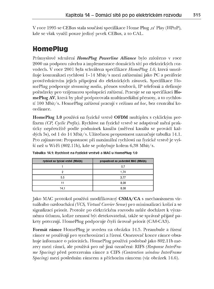 - domácí sítě – HomePNA, FireWire, USB, HomePlug, Bluetooth, WiMedia