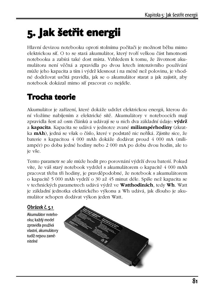 - dozvíte se, jak správně používat akumulátor, aby notebook co nejdéle mohl pracovat bez elektrické sítě,
