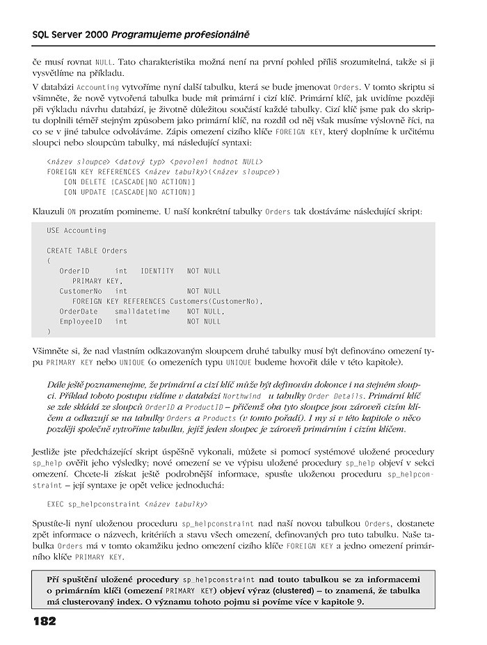 Co znamená slovo „programovat“ v SQL Serveru? Především dobře rozumět principu relačních databází, ovládat jazyk Transact-SQL, umět v něm psát uložené procedury, spouště a skripty, rozumět vytváření indexů a zpracování transakcí. Dnes také integrovat do databázových aplikací XML, zprovoznit ve webu fulltextové vyhledávání a chápat, kdy je provádění operací efektivnější na serveru a kdy na klientu. A další funkce a chování vyspělého databázového systému… Rutinovaný programátor SQL Serveru zařídí jakoukoli správcovskou operaci v Query Analyzeru či na příkazové řádce naťukáním výrazu, který se v jazyce SQL mnoho neliší od holé věty v angličtině – ať už jde o založení databáze, přidělení přístupového práva či naplánování údržbové operace. O všech těchto věcech, od samotných základů SQL Serveru až do hloubky různých možností, tajů fungování databázového stroje a tipů na usnadnění vlastní práce i optimalizaci výkonu systému, pojednává autor v této knize. Vždy čtivě, s nadhledem a hlavně srozumitelně, což dohromady knize vydobylo pověst světově nejúspěšnější knihy o SQL Serveru už ve vydání pro verzi 7. Nyní k vám přichází v českém překladu pro verzi 2000 – aktualizovaná, doplněná a opět posvěcená uznalým hodnocením zahraničních čtenářů a horními příčkami v žebříčcích bestsellerů.