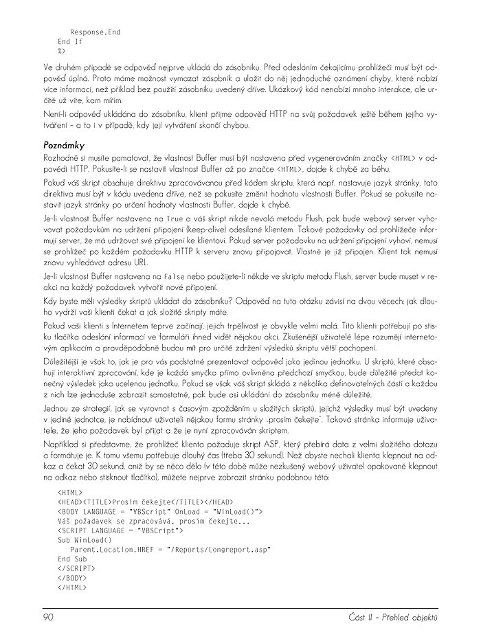 Kratší úvodní část rozebírá roli skriptů na straně serveru při vytváření webových aplikací a demonstruje jejich implementaci na IIS a jiných kompatibilních serverech.