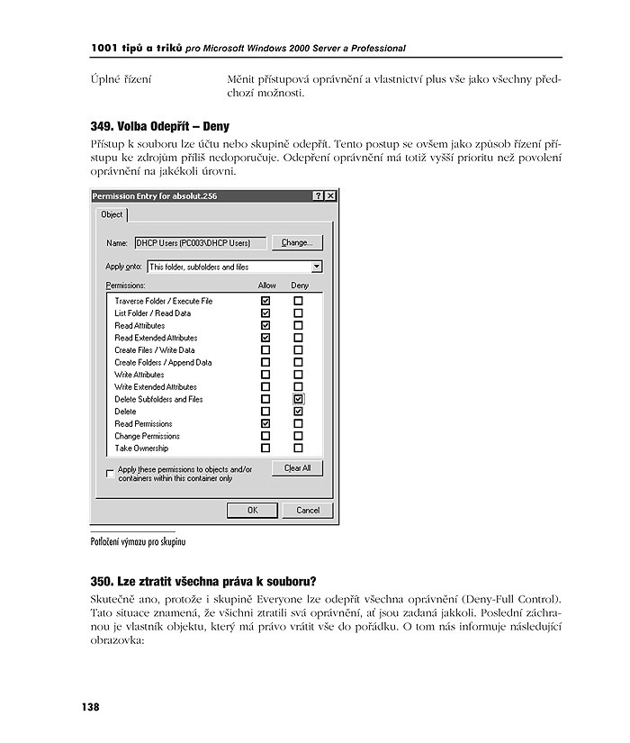 Kniha 1001 tipů a triků pro Microsoft Windows 2000 Server a Professional je výběrem toho nejcennějšího z know-how dvojice zkušených administrátorů, odborných konzultantů a autorů řady publikací. Představuje plejádu užitečných a většině správců utajených možností a předkládá řešení palčivých problémů, které správce sítí s Windows 2000 nejčastěji tíží. Nevyhýbá se problematickým aspektům chování systému a jeho potenciálním dírám, ukazuje, co s v něm děje a odpovídá na často kladené i nevyslovované otázky.