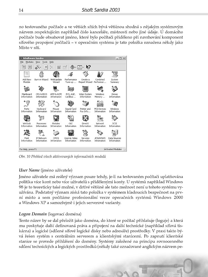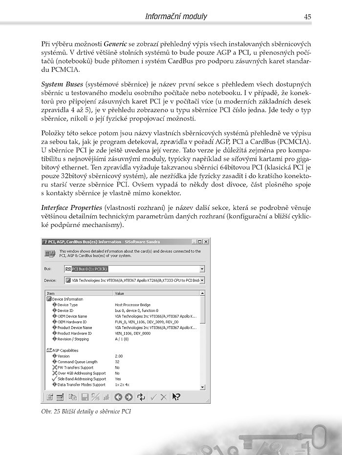 - Informační moduly – kniha vás provede jejich použitím, ukáže vám, jak zjistit detailní informace i o skrytých součástech vašeho počítače a poskytne návod k získání tipů pro nastavení vašeho hardwaru i operačního systému, aby správně fungoval.