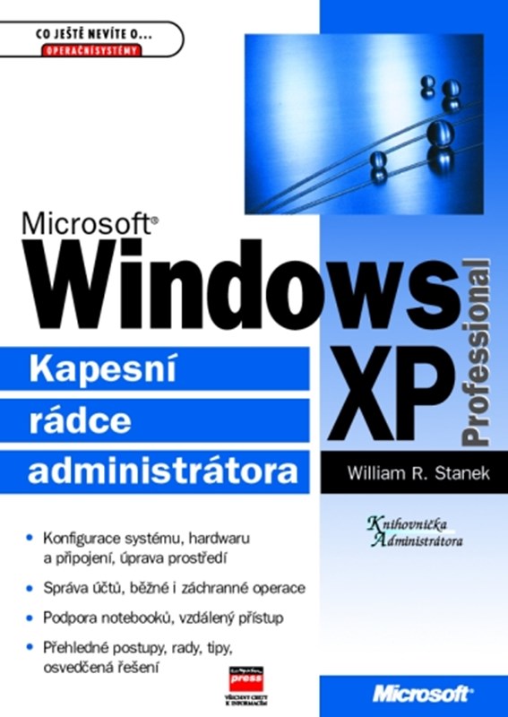 Příruční knížka vybavuje částečně znalé správce stručnými vysvětleními, přehlednými postupy, důležitými upozorněními, užitečnými tipy a pohotovými řešení problémů pro efektivní každodenní správu stanic a sítí s Windows XP Professional. Najdete v ní vše důležité o konfiguraci systému, hardwaru a síťových zařízení, úpravách pracovní plochy a vylepšování uživatelského prostředí, řízení přístupu prostřednictvím účtů a přidělených oprávnění, podpoře notebooků a cestujících uživatelů, vzdáleném přístupu (pevnou linkou i bezdrátově), konfiguraci off-line souborů a diskových kvót, pozměňování internetových nastavení pomocí skupinových zásad (Group Policy), automatizaci rutinní údržby a zálohování, řešení problémů a optimalizaci výkonu.