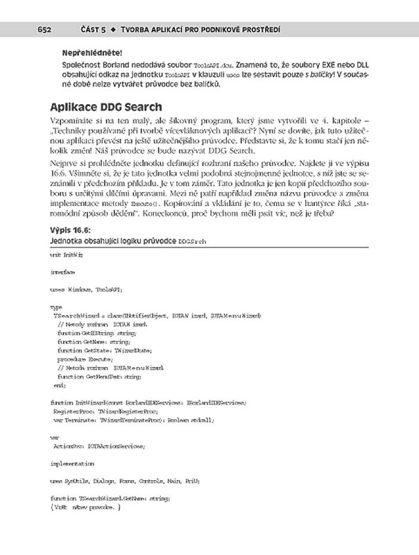Mistrovství v Delphi 6 pokrývá všechny aspekty programování v Delphi 6, vyjma úplných základů. Čtenář zvládající tvorbu jednoduchých aplikací a znalý Object Pascalu zde najde vše od volání rozhraní Win32 API přes threading či model CORBA až po tvorbu vlastních komponent VCL, pokročilé databázové technologie nebo internetové aplikace. Najdete v ní rovněž mnoho dalších velmi zajímavých příkladů, zabývajících se například rozšířením jádra operačního systému nebo tvorbou aplikací pro mobilní telefony a jiná bezdrátová zařízení.A co je nejdůležitější, všechna témata jsou probrána podrobně, a to jak v teoretické rovině a detailech nejrůznějších možností a parametrů, tak i na užitečných ukázkách praktických příkladů.