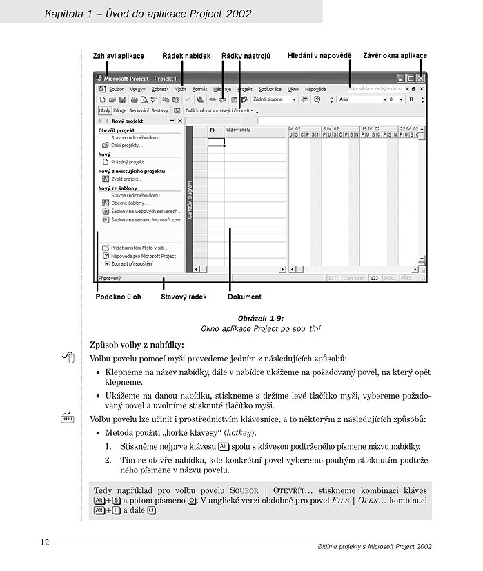 Aplikace Microsoft Project 2002 slouží k plánování, sledování a řízení projektů a ke komunikaci s projektovým týmem Svým uživatelům má usnadnit náročnou práci s koordinací a řízením jednotlivých fází projektu. Aby se tak dobrý sluha jako Microsoft Project nestal zlým pánem či noční můrou, nýbrž pohotovým a snadno ovladatelným pomocníkem, připravili jsme pro vás publikaci, která vás provede prací s aplikací od samého začátku, a poslouží i jako příručka pro náhodné nahlédnutí na danou problematiku. Rozsáhlý index vám usnadní orientaci a popisy jednotlivých témat jen výjimečně vyžadují prostudování předchozích odstavců. Pokud tomu tak je, je uveden vždy odkaz do předchozí či další kapitoly.