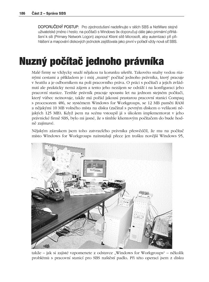 - Čtvrtá část je určena těm, kdo chtějí využít SBS na maximum. Dozvíte se, jak pracovat s SQL Serverem 2000, nakonfigurovat IIS (včetně instalace FTP) a vytvoříte si jednoduché intranetové stránky. Na závěr vás čeká kapitola o dalších aplikacích pro SBS, včetně programů Microsoft Digital Dashboard, bCentral a účetních aplikací.