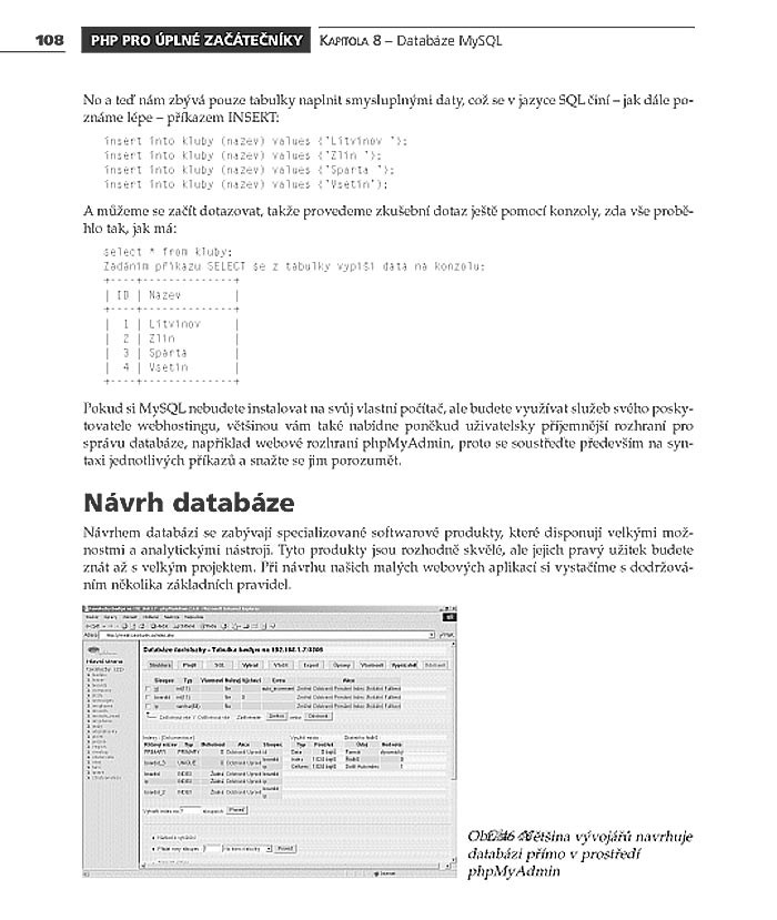 - databáze MySQL: tvorbu tabulek, zápis a výběr dat, nepřeberné možnosti jejich zpracování a zobrazení na stránkách PHP,