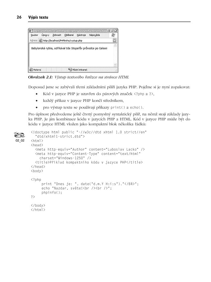 Kniha je určena především tvůrcům stránek, kteří nemají příliš zkušeností s programováním, nebo používají jiné platformy. Zachycuje již aktuální verzi PHP5.