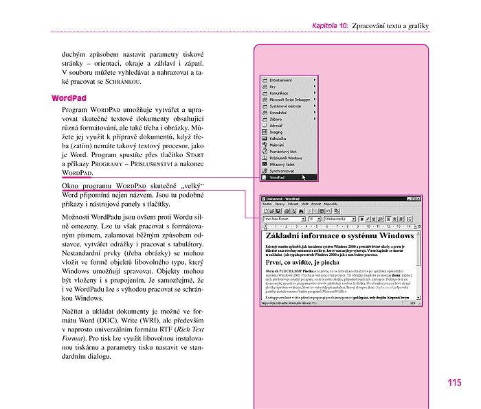 - zpracovávat text a grafiku v programech Poznámkový blok, WordPad, Imaging a Malování