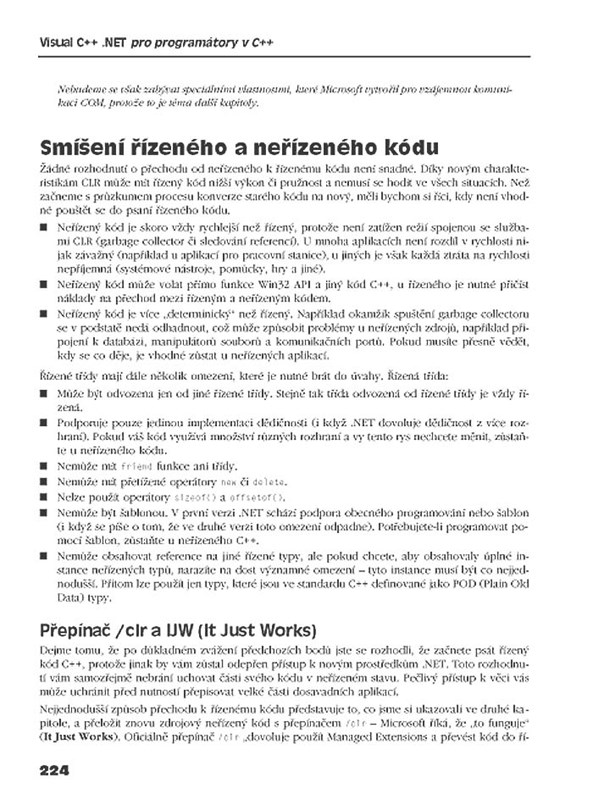 Kniha z dílny programátory celého světa tak obdivované edice „Programmer to Programmer“ nakladatelství Wrox se věnuje všem těmto změnám a novým možnostem. V první části se zaměřuje na důsledky plynoucí z .NETu pro stávající programátory v C++: prozkoumáte prostředí .NET Framework a jeho vlastnosti z pohledu jazyka C++. Ve druhé části se budete zabývat „neřízeným C++“ – nejprve v kontextu úpravy starších programů pro jeho funkci v rámci nových .NET programů, dále pak poznáte nové možnosti atributy řízeného programování pomocí COM, nové vlastnosti ATL 7.0 (ATL serveru) a uvidíte, že tradiční programování v C++ hraje na poli programování aplikací stále významnou roli.