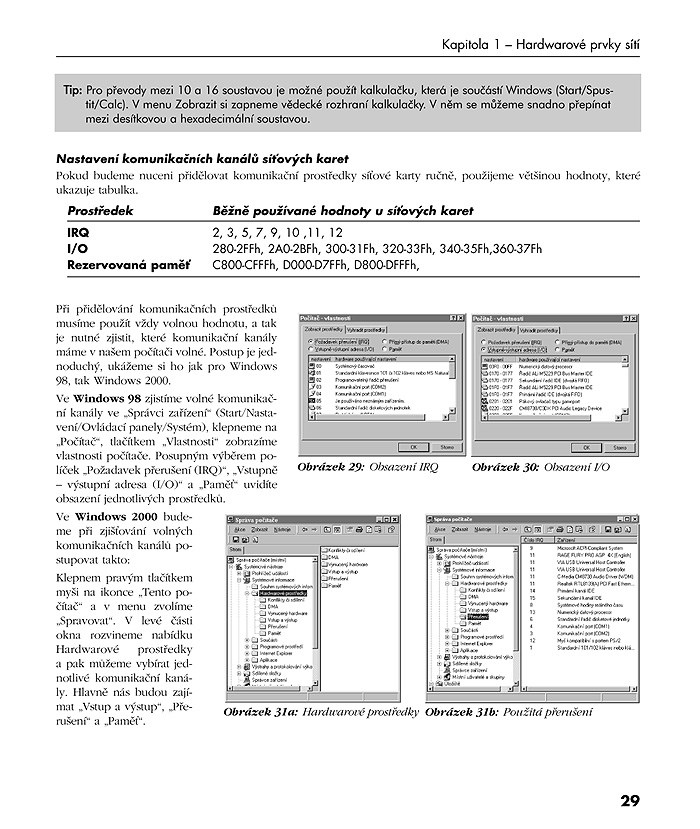 Převážnou část knihy tvoří kapitoly věnované konfiguraci a správě jednotlivých typů sítí podle použitého operačního systému (malá síť s Windows 98, 2000, XP, síť s Windows 2000 Serverem, síť Novell NetWare, sítě Linux). Příslušné části představí „filozofii“ každé z nich a názorně předvedou všechny základní činnosti správce od zapnutí a vypnutí serveru, instalace klienta, přes účty uživatelů, souborový systém, nastavení přístupu a práv k adresářům a souborům, problematiku tisku v síti až po zálohování a archivaci dat i důležitá specifika jednotlivých síťových systémů.