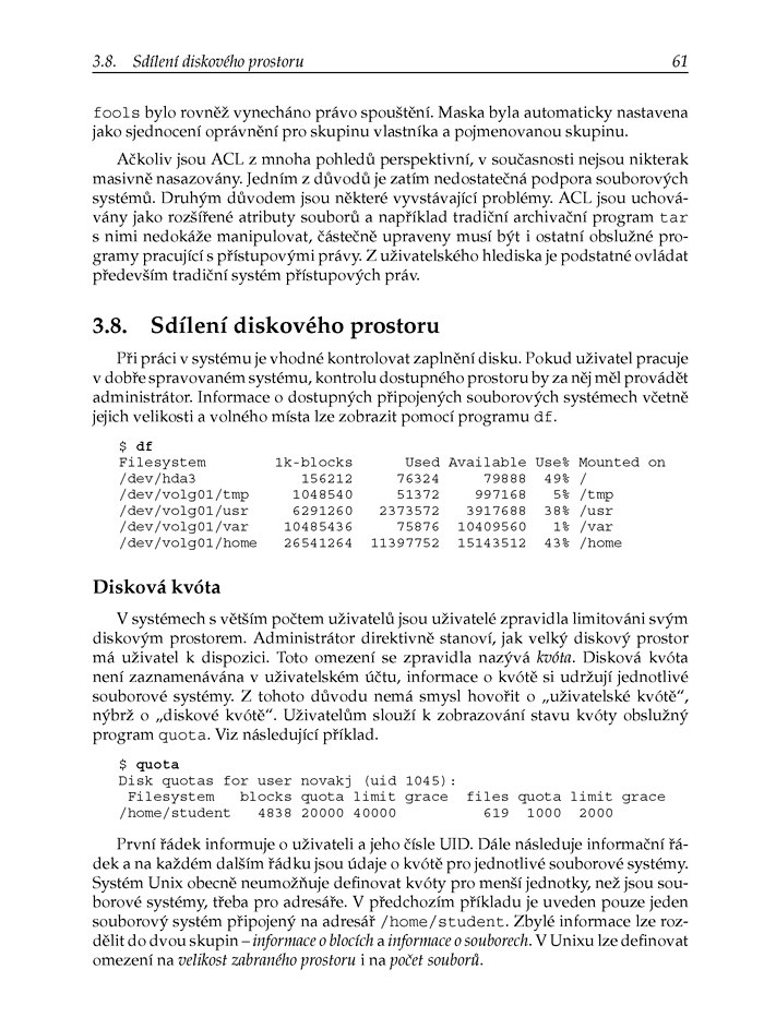 - Organizace dat na disku, přístupová práva
