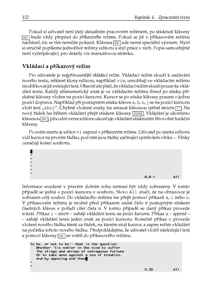 - Zpracování textu v obslužných programech, filtrech a editorech, včetně vi a Emacsu