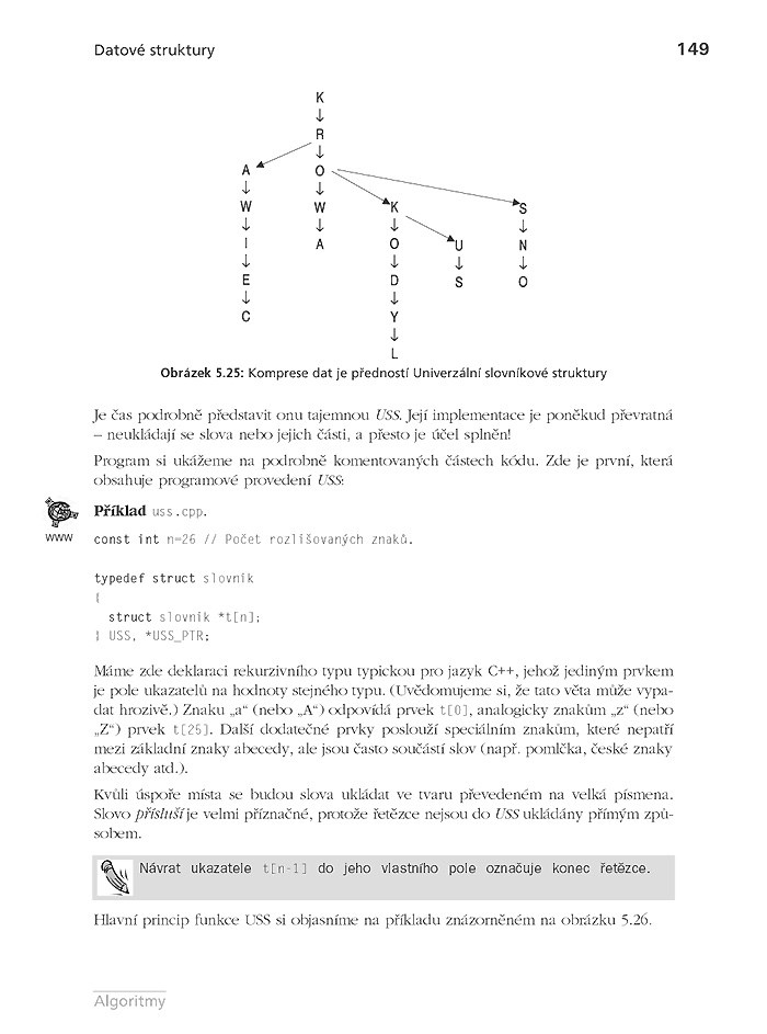 Kniha obsahuje mnoho příkladů a cvičení. Pro ilustraci popisovaných řešení je v knize použit jazyk C++. Volba programovacího jazyka však neovlivňuje chod skutečného programu. Aby prezentovaným implementacím algoritmů v knize rozuměli i uživatelé, kteří C++ neovládají, najdou v ní i přílohu se stručným rychlokurzem tohoto jazyka.